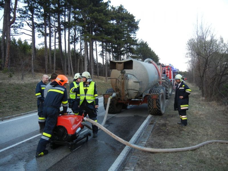 Nach dem Eingehen mehrerer Anrufe bei der Bezirksalarmzentrale und der Feuerwehr Markt Piesting, wurde am Sonntag, dem 25.03.2012 um 18,09 Uhr mittels Sirene zu einem Waldbrand im Bereich der Hernsteiner Straße alarmiert. Die Einsatzkräfte wurden von einem Jagdpächter an der Schadenstelle eingewiesen.